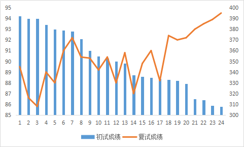 2021年录取人数每年基本稳定在全日制专硕与学硕共40人左右,学硕可以调调剂为专硕。下图展示了2021年学硕录取情况;共录取24个,初试分数范围在309-392。复试分范围在85-94之间。所以,如果想要一战上岸,初试成绩在330以上,才会比较稳。300-320,也有机会,但是几率不大,除非复试表现一鸣惊人。