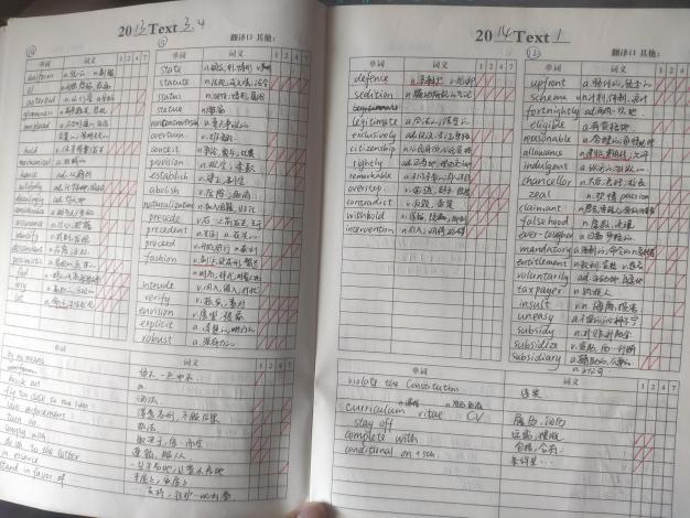 英语的关键就是单词!找到适合自己的背单词方法。比如各类背单词APP(我用的扇贝单词),看视频背单词,单词书,后期还有各种小程序,背就完了。越早开始越好,第一遍可以安排45天一轮,刚开始背确实很痛苦,可能每天要花1到2个小时背单词还记不住。从懒散的大学上课状态转入备考状态,本身就是一个挑战,坚持每天打卡背单词就是一个很好的过渡阶段任务。习惯了复习的节奏,第二遍速度就快很多了。我和一起备考的小伙伴,每天用“单词大师”小程序PK单词量,很上瘾哈哈。背单词要一直持续到考英语前,大约背5轮,考试前一个月还要留时间给政治和史论,每天快速过几百个巩固即可,留意同义替换的词汇。