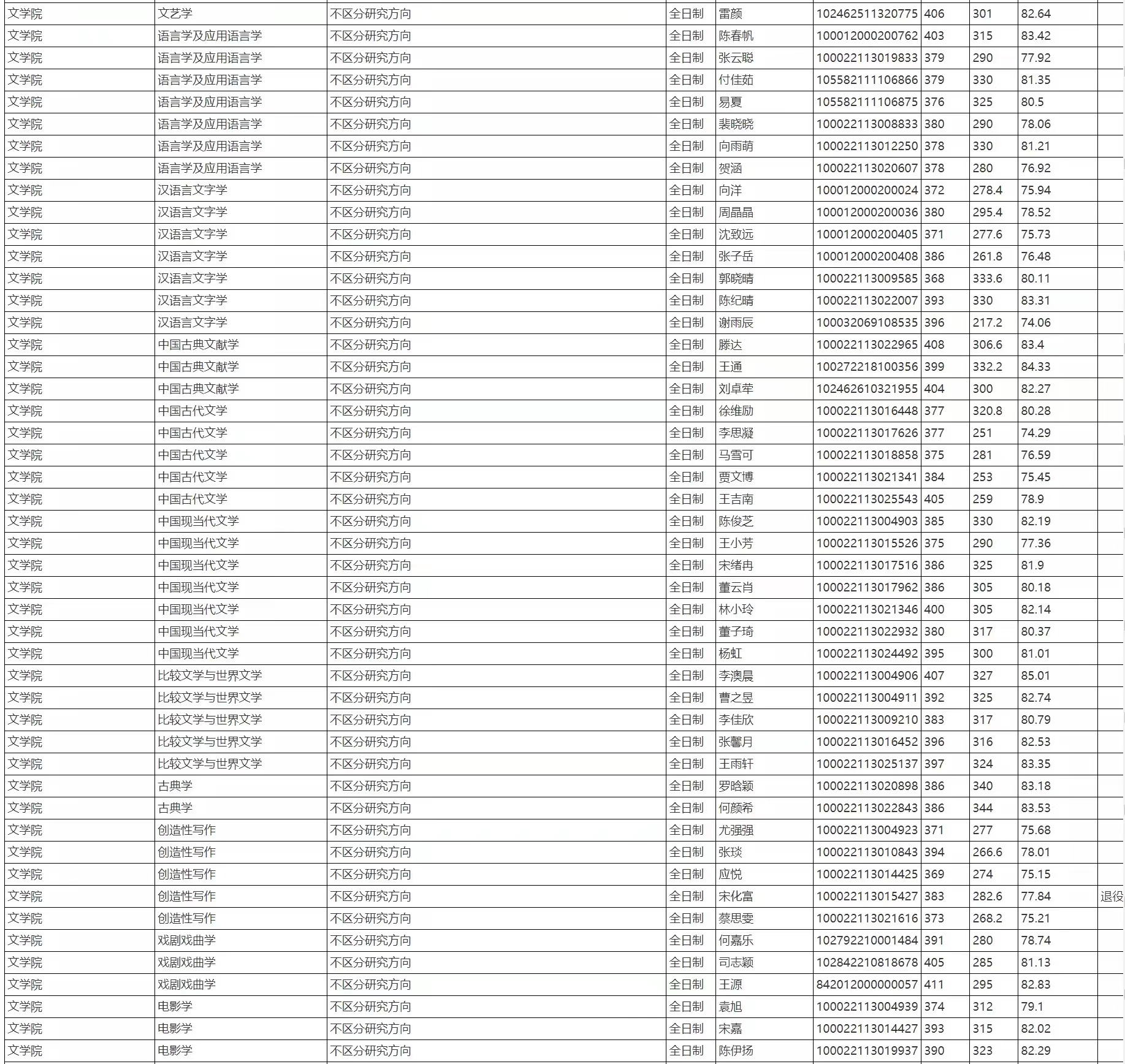 中国人民大学考研辅导班:2022年中国人民大学文学院硕士研究生招生拟录取名单