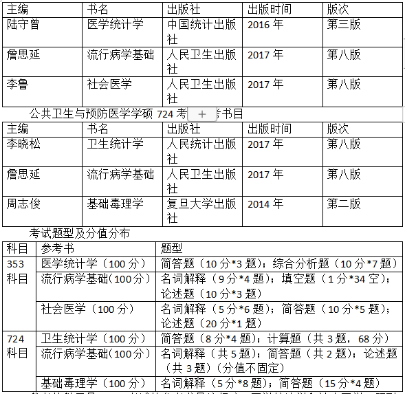 我考的科目是353,考试的参考书是流行病、医学统计学和社会医学,题型是以名词解释和简答题为主,复习的重点前期是理解,后期是背诵。