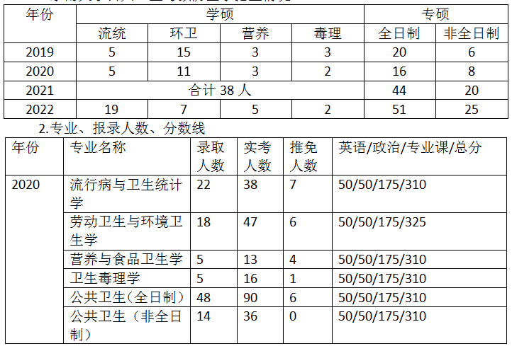 1.东南大学公共卫生与预防医学招生情况