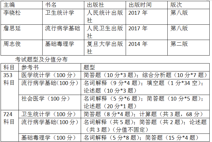 公共卫生与预防医学学硕724考试参考书目