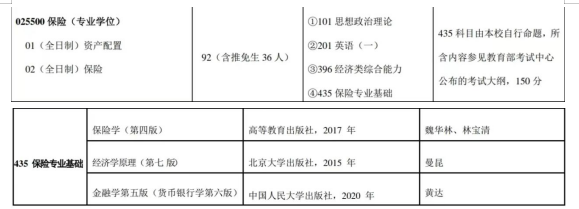 贸大435考察保险学、经济学、金融学的相关内容,考察占比是4:4:2的比例,初试题型包括选择题、判断题、名词解释、简答题、论述题。每一种题型都可能涵盖对三大部分知识的考察,所以大家还是在备考过程中认真按照书本进行尽可能全面的复习。
