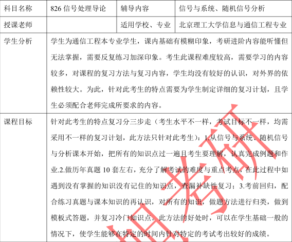 北京理工大学信息与通信工程(826信号处理导论)专业考研参考书目、考研形势分析、真题解析、复习规划、授课计划汇总