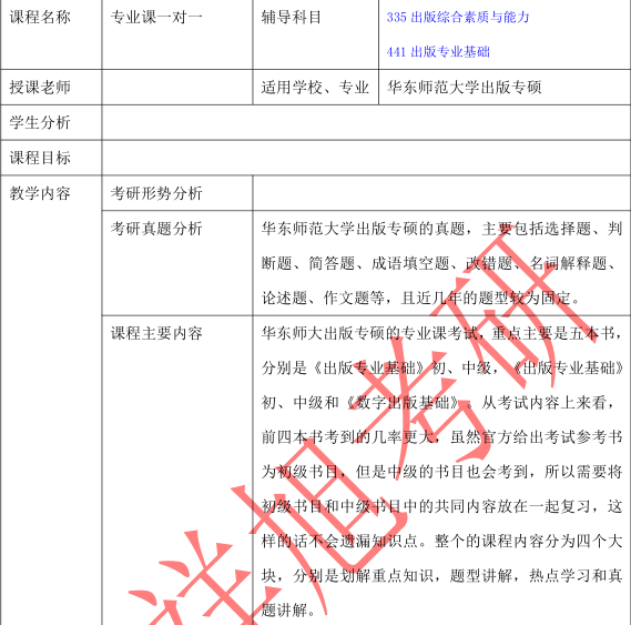 华东师范大学出版专硕考研真题题型、参考书目、复习规划、授课计划等汇总
