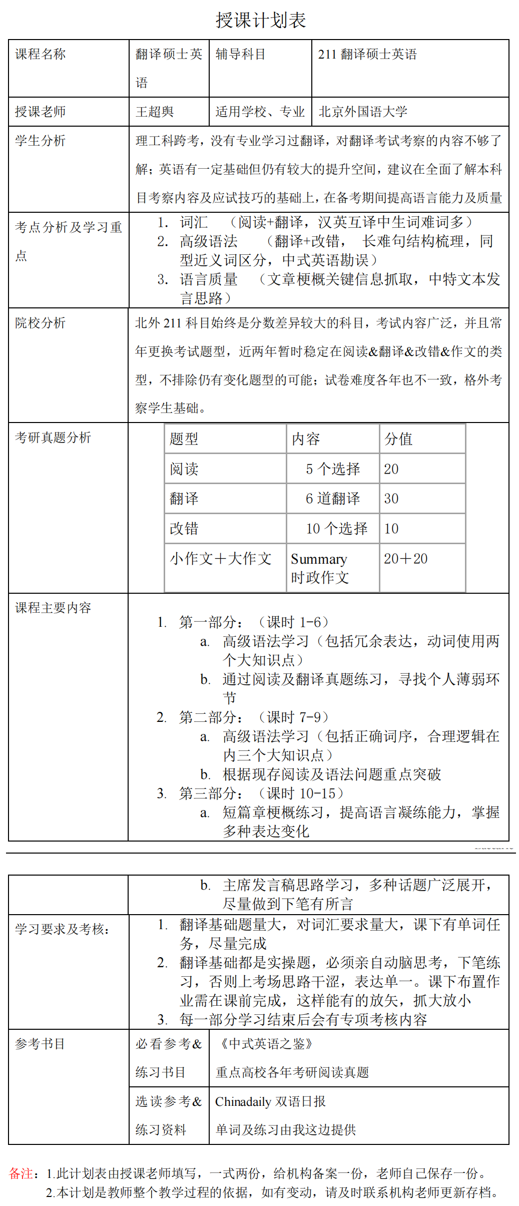 新祥旭考研:2023北京外国语大学翻译硕士英语考研必看详细授课计划安排