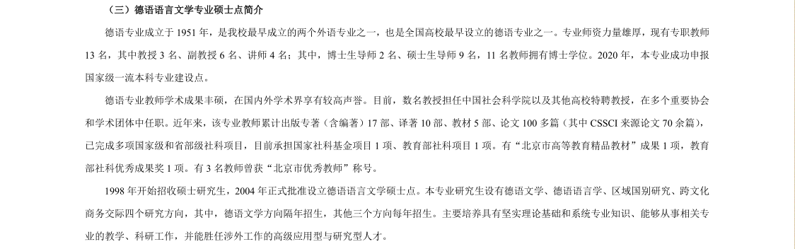 对外经济贸易大学德语语言文学2023年考研招生专业简介、考试科目、招生人数、参考书目