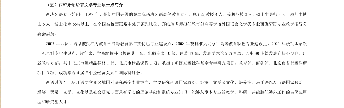 对外经济贸易大学西班牙语语言文学2023年考研招生专业简介、考试科目、招生人数、参考书目