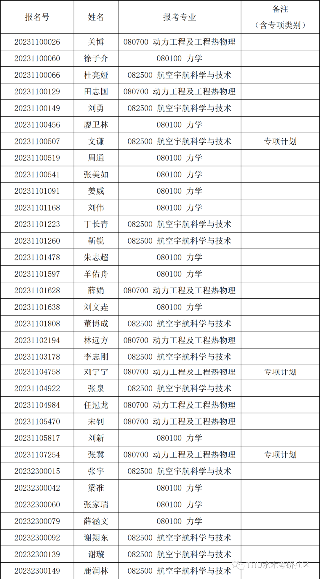 清华大学航天航空学院2023年招收公开招考招考博士入围综合考核的名单已 确定,现公布如下: