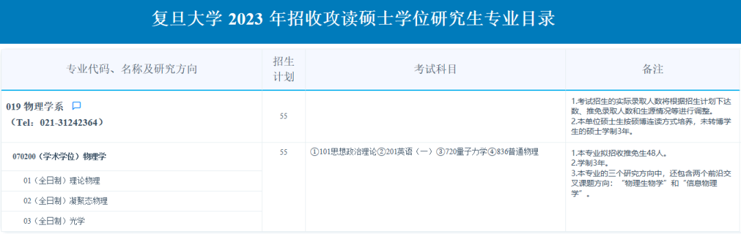 复旦大学考研辅导班:2023年复旦大学物理学系硕士研究生专业目录