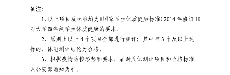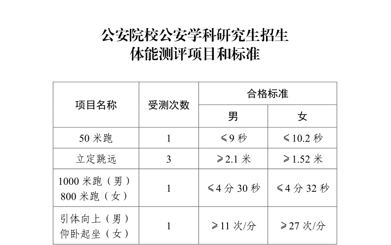 中国人民公安大学2023年硕士研究生招生体能测试项目和标准