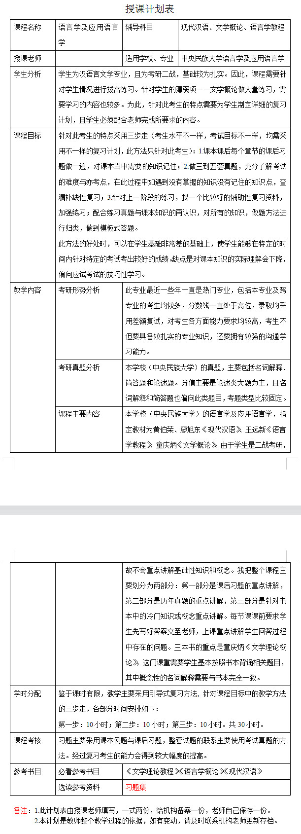 新祥旭考研一对一:2023年中央民族大学语言学及应用语言学考研一对一辅导授课计划