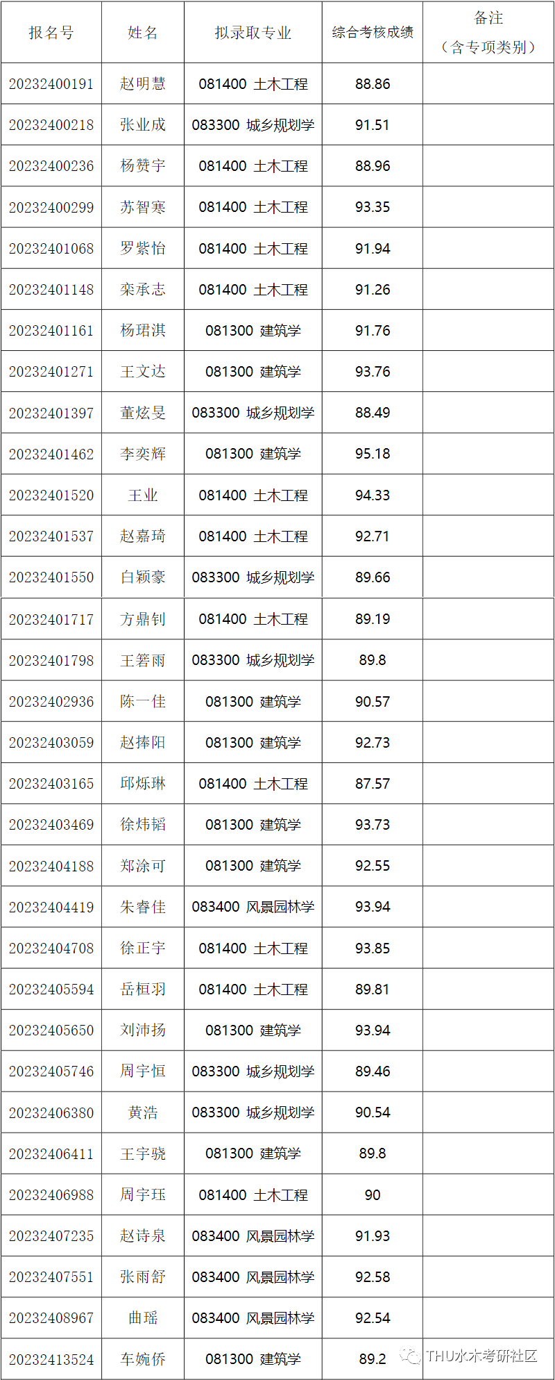 经综合考核和研究生招生工作领导小组讨论,报学校研究生招生工作领导小组批准,清华大学建筑学院2023年接收推荐免试直博生拟录取名单,现已确定,现予以公示