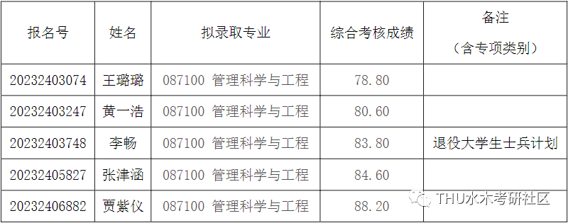 经综合考核和研究生招生工作领导小组讨论,报学校研究生招生工作领导小组批准,清华大学工业工程系2023年接收推荐免试直硕生拟录取名单,现已确定,现予以公示: