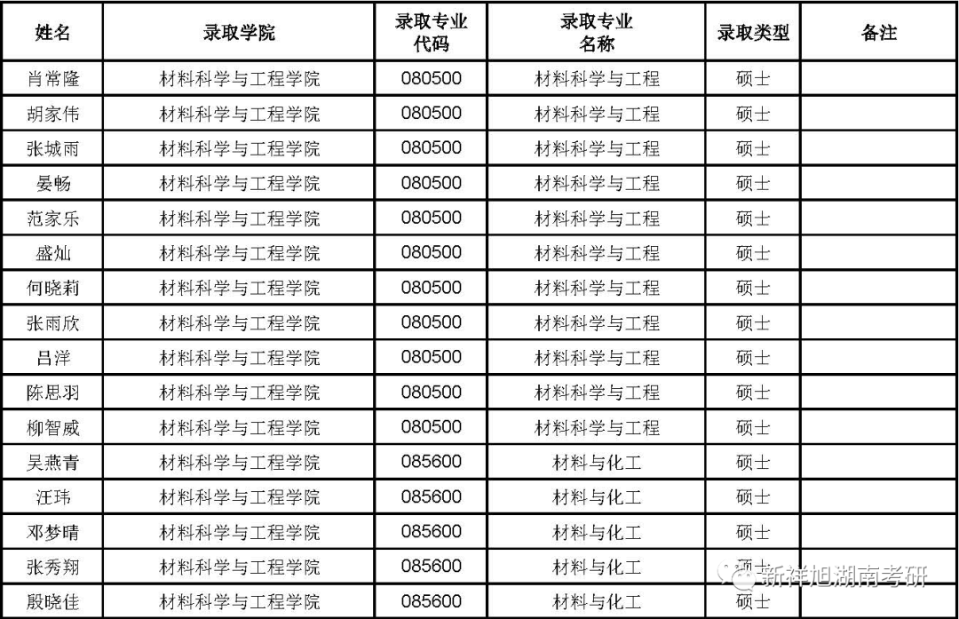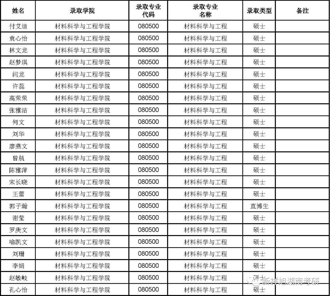 2023年湖南大学材料科学与工程学院拟录取推荐免试研究生名单公示