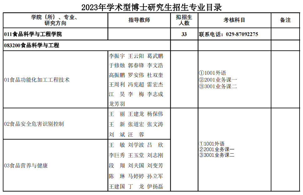 新祥旭考研:西北农林科技大学2023年食品科学与工程学院博士研究生招生专业目录