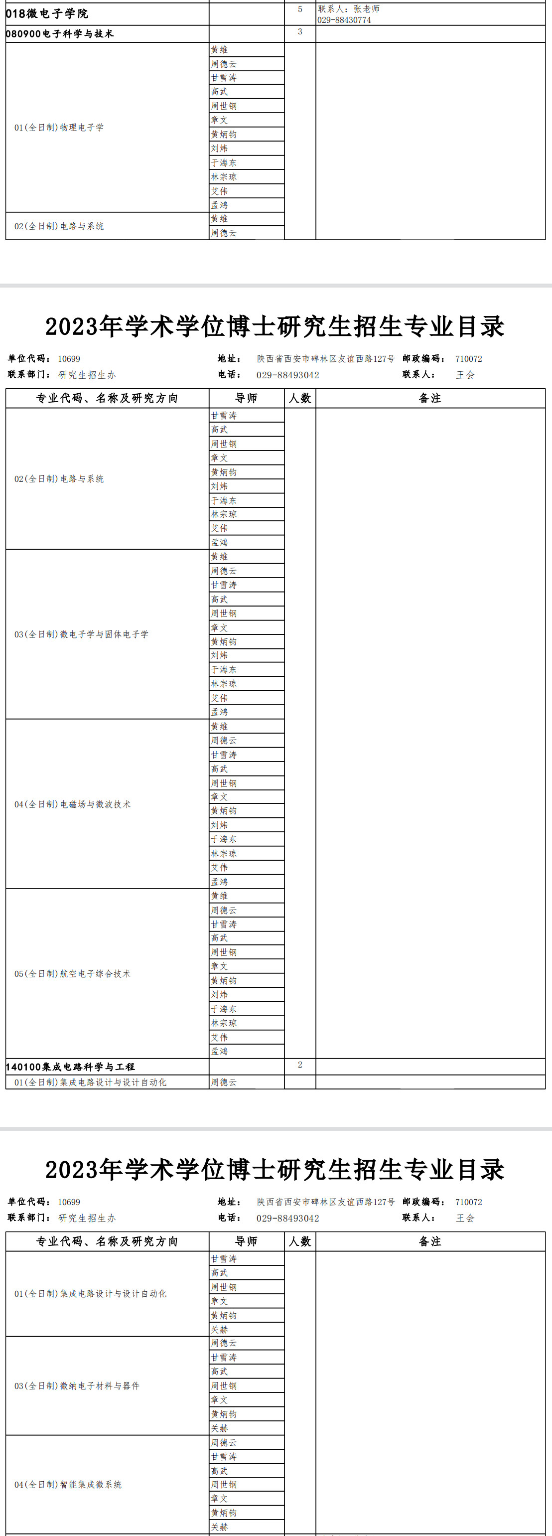 西北工业大学2023年微电子学院学术型博士研究生招生专业目录