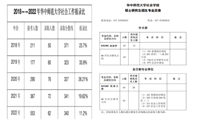 (2)华中师范大学社会工作专业考研报录情况及考研难度分析