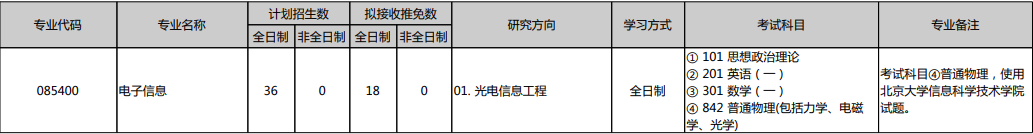 科目:① 101 思想政治理论② 201英语一③ 301 数学(一)④ 842 普通物理(包括力学、电磁学、光学)