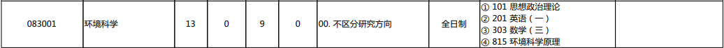 科目:① 101 思想政治理论② 201英语一③ 303 数学(三)④ 815 环境科学原理