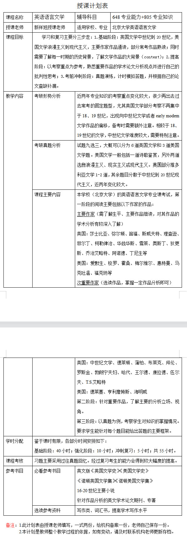新祥旭考研:2024年北京大学英语语言文学考研一对一辅导授课计划