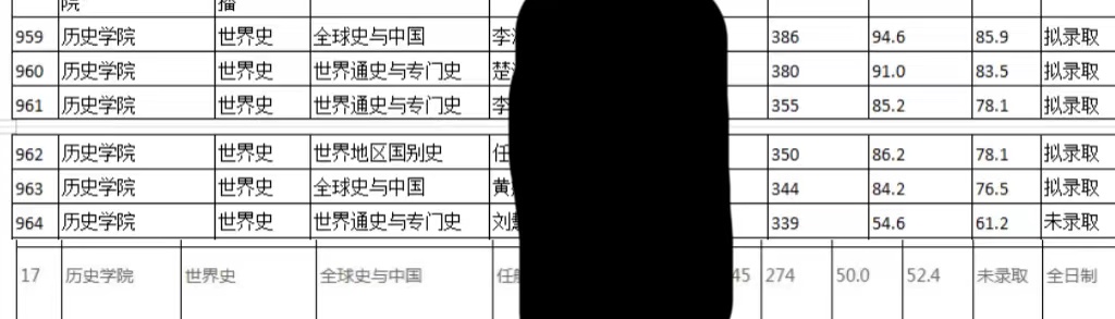 大致观看了一下今年北京地区统考专业课分数 已读中国政法、人大、民大等校,考中国史方向滴专业课稍微偏高一些,世界史大概210-235,我本人成绩比预想要低个10分哈哈哈,压分了能接受。因为我确实知道自己偏科世界史,在准备时候也特别注意了这一点,后面细说。