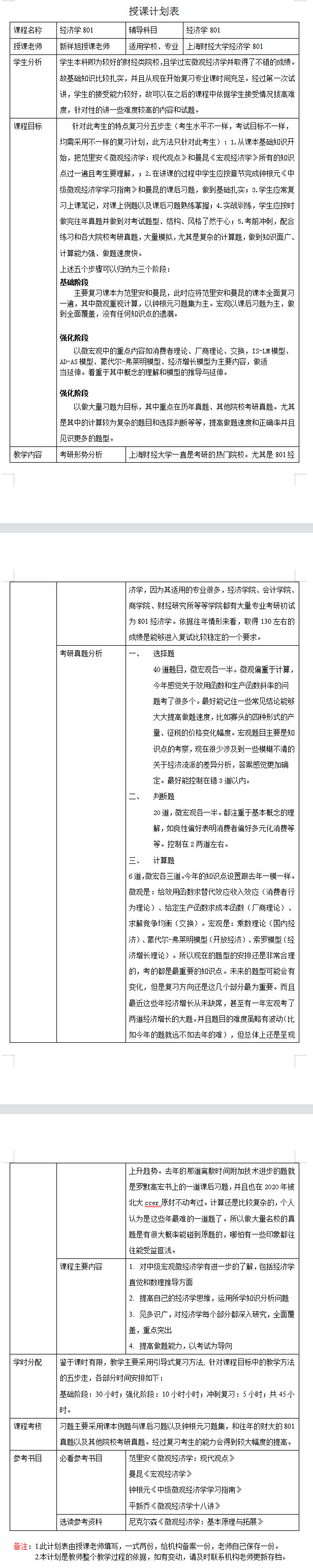 新祥旭考研:2024年上海财经大学801经济学考研一对一辅导授课计划