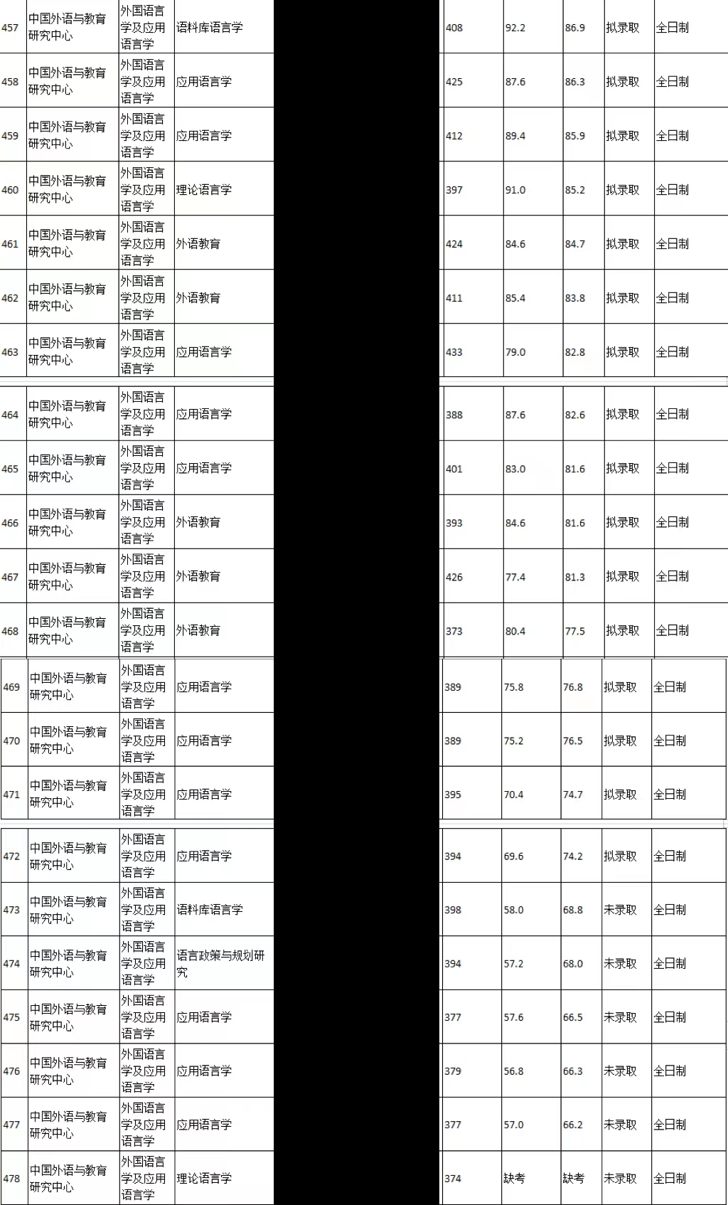 复试人数:9 拟录取:7 初试最高分:399 初试最低分:370