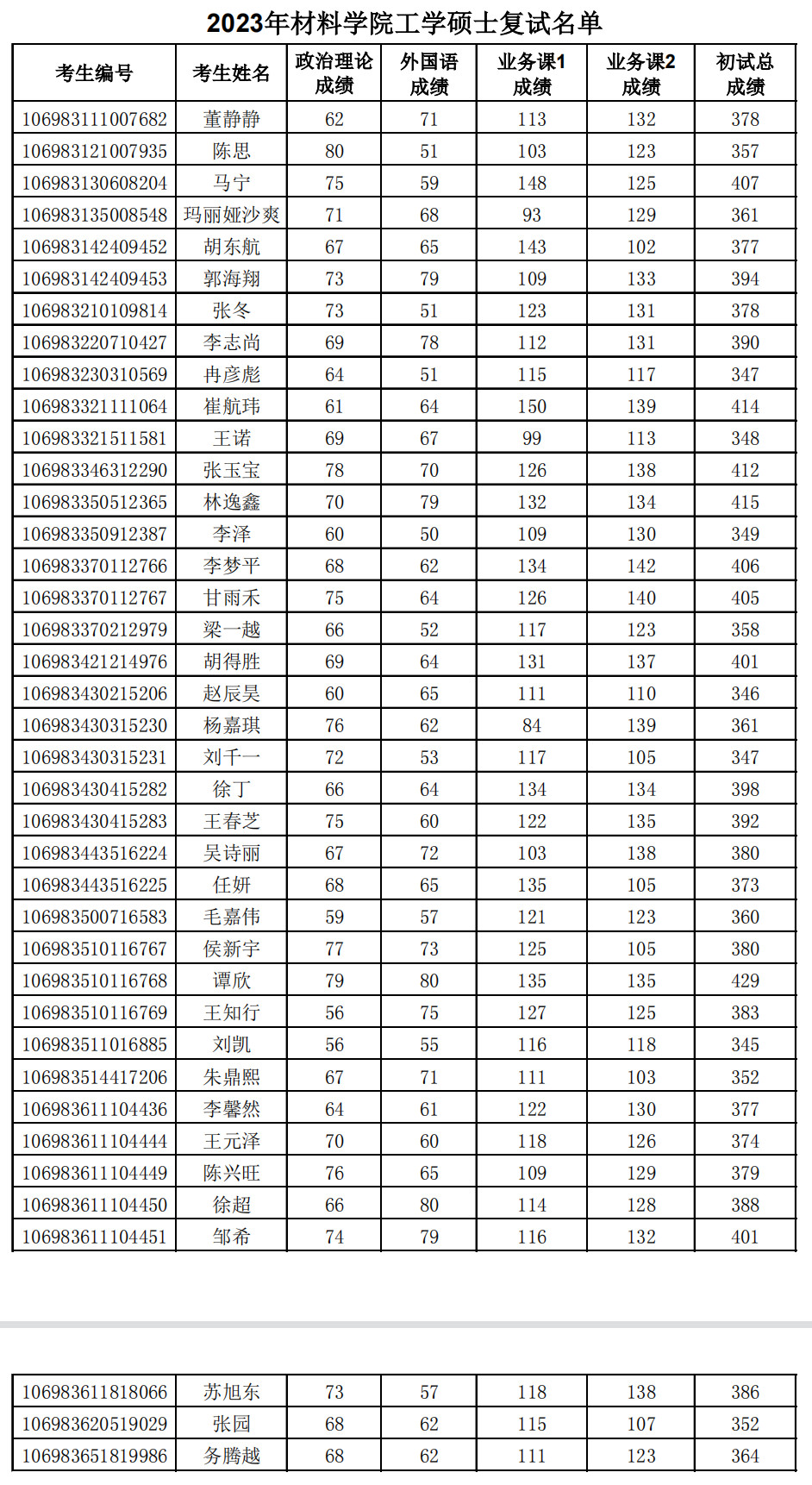 西交堂考研:2023年西安交通大学材料科学与工程学院硕士研究生复试名单