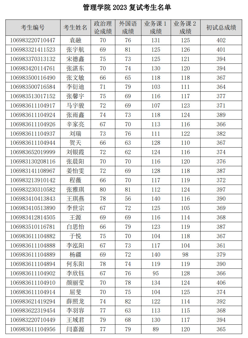 西交堂考研:2023年西安交通大学管理学院硕士研究生复试名单