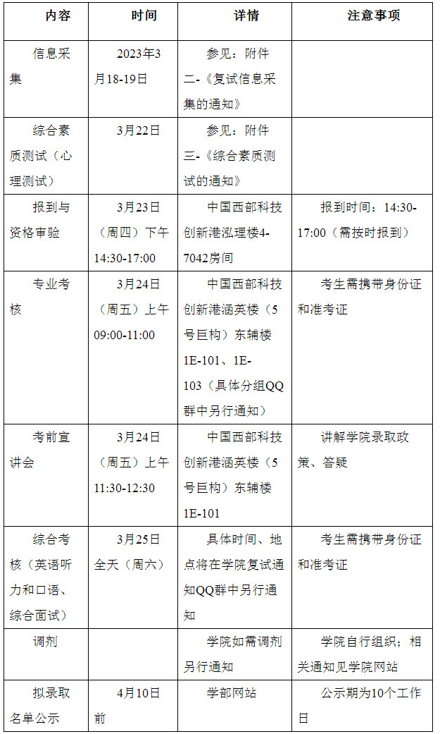 现场报到:2023年3月23日(周四)14:30-17:00于中国西部科技创新港4号巨构(泓理楼)-7042室进行资格审核。