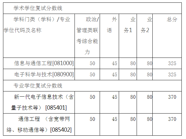 学术学位和专业学位考生参加复试的分数线如下(总分和单科分数必须同时满足学院划定的复试线):