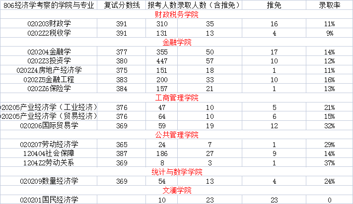 下面来简单介绍一下我们学校的报考情况以及录取率(主要以806经济学为例)。