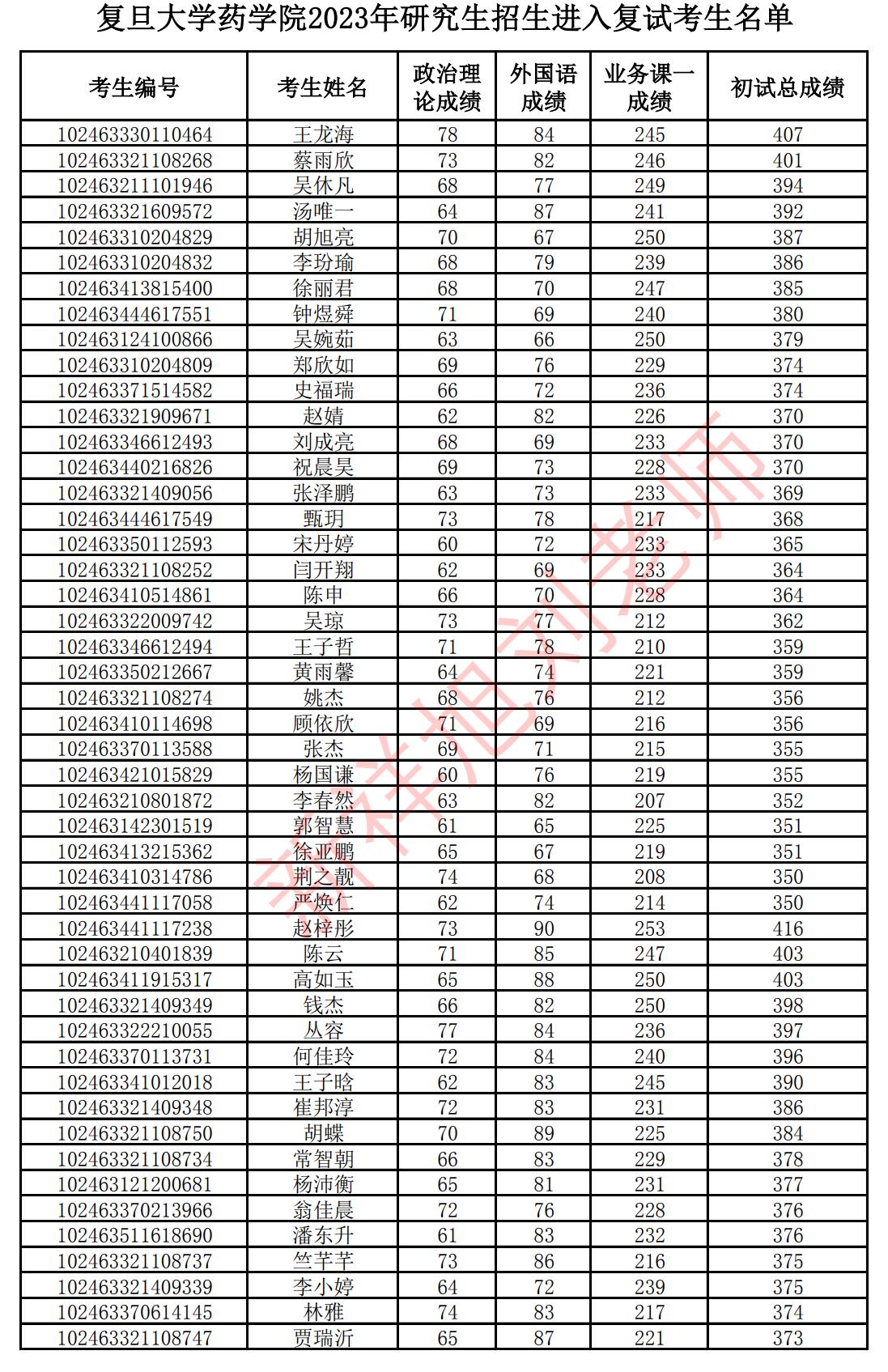 新祥旭考研:2023复旦大学药学专业复试时间安排、复试名单、复试要求