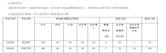 (1)社会学院复试招生计划