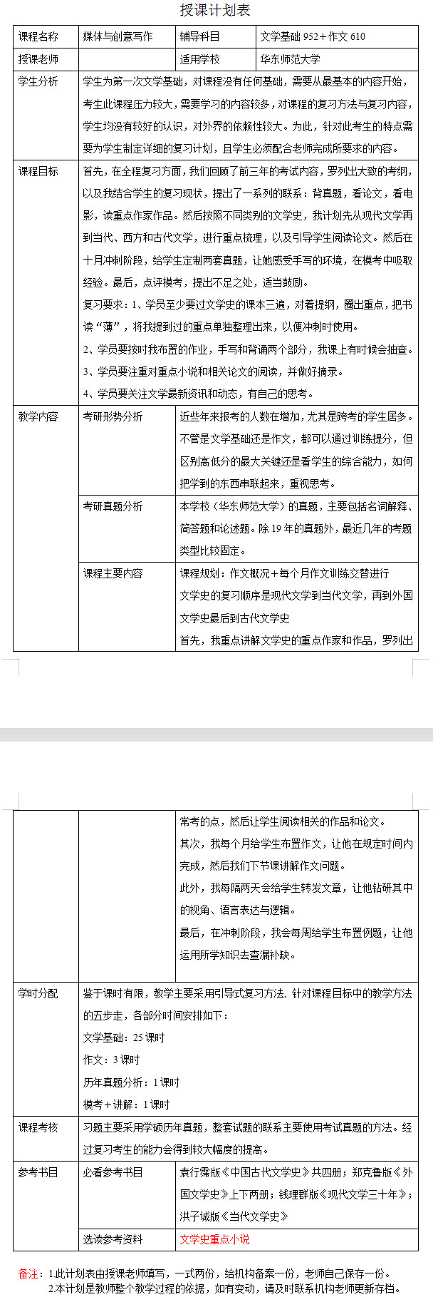 新祥旭考研:2024年华东师范大学创意写作专业考研一对一辅导授课计划