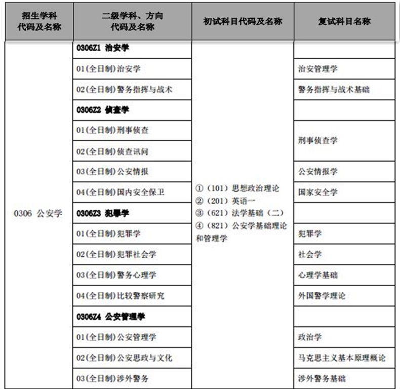 2018年中国人民公安大学公安学0306考研参考书目、招生人数、考试科目、专业指导、经验