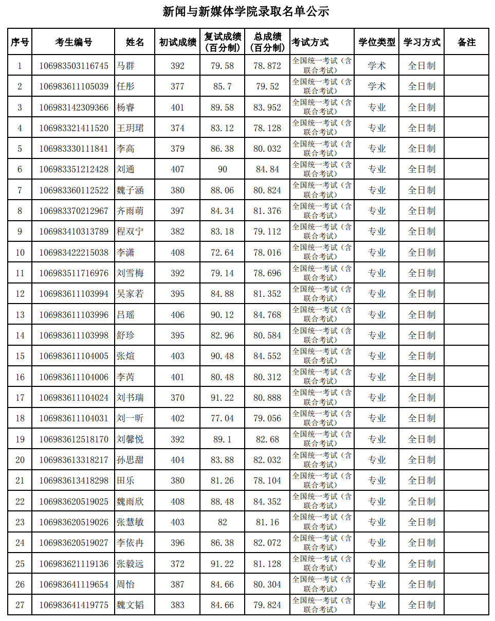 新祥旭西交堂:2023年西安交通大学新闻与新媒体学院硕士研究生拟录取名单