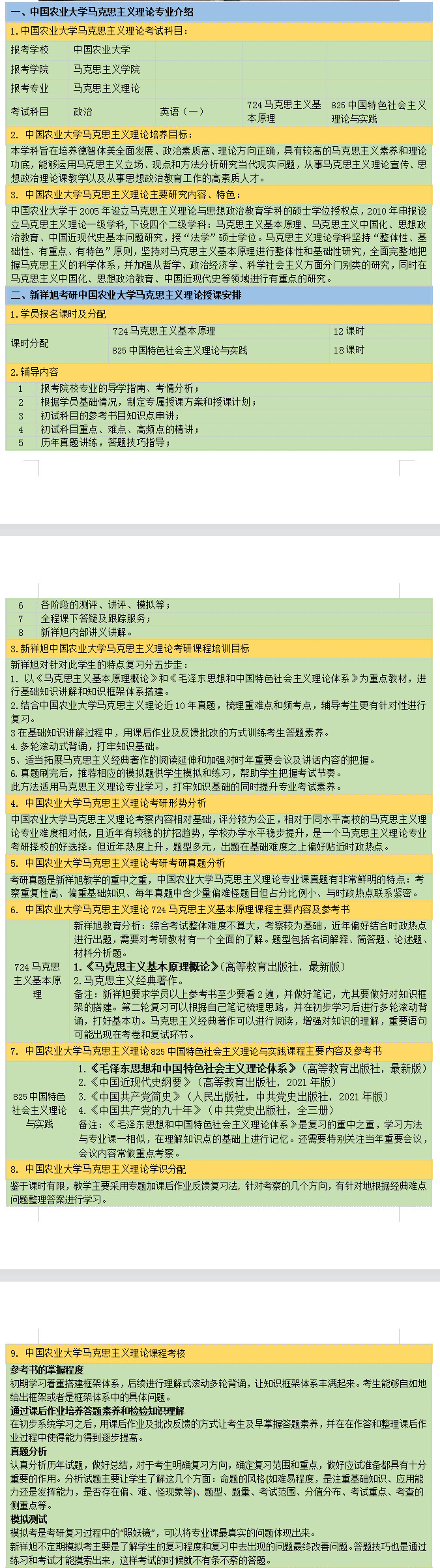 新祥旭考研:2024年中国农业大学大学马克思主义理论考研一对一辅导授课计划