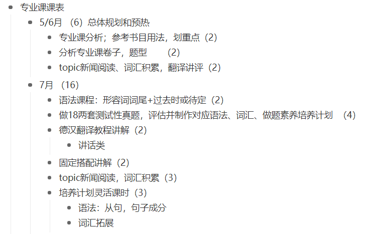 做真题的时候,我发现很多地道用法只有去精读Zeit,Spiegel,Tagesschau等门户网站上的原文才能学到。而且贸大选的文章长,答题是大量的主动输出模式(近几年都有写Kommentar,Interpretation这样10分的小作文),我因为练得少(真的影响很大),模考没有一次完整做完过。从10月中旬开始,我就每天做一篇《德语翻译教程》的练习,并且在幕布上整理表达,周末复盘、背诵。可以说我后期这两个多月的学习才是真的在考场上帮助我的部分。