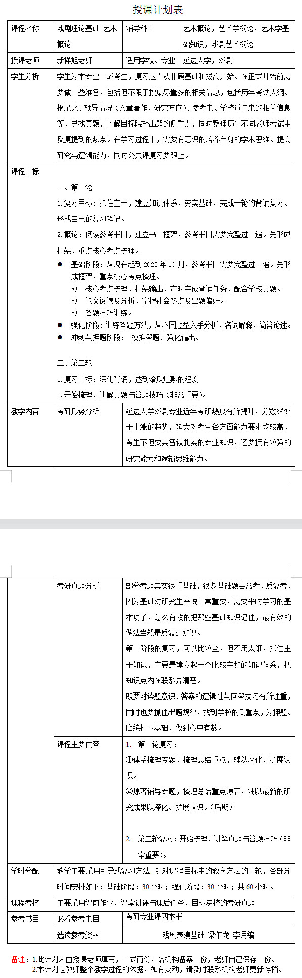 新祥旭考研:2024年延边大学戏剧专业考研一对一辅导授课计划