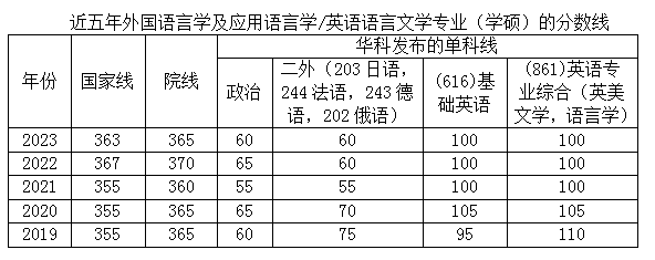 近五年外国语言学及应用语言学/英语语言文学专业(学硕)的分数线