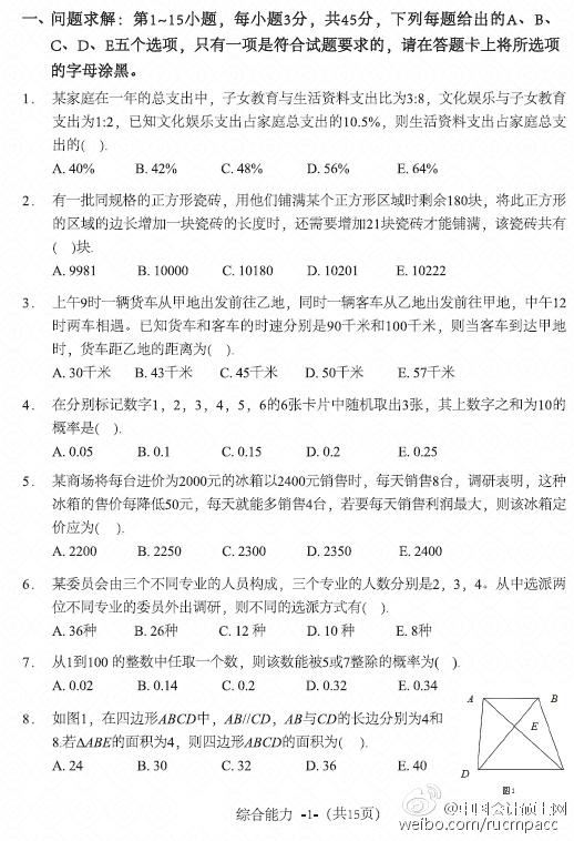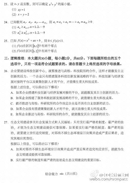 2016年199管理类联考《综合能力》真题、参考答案 (完整版)
