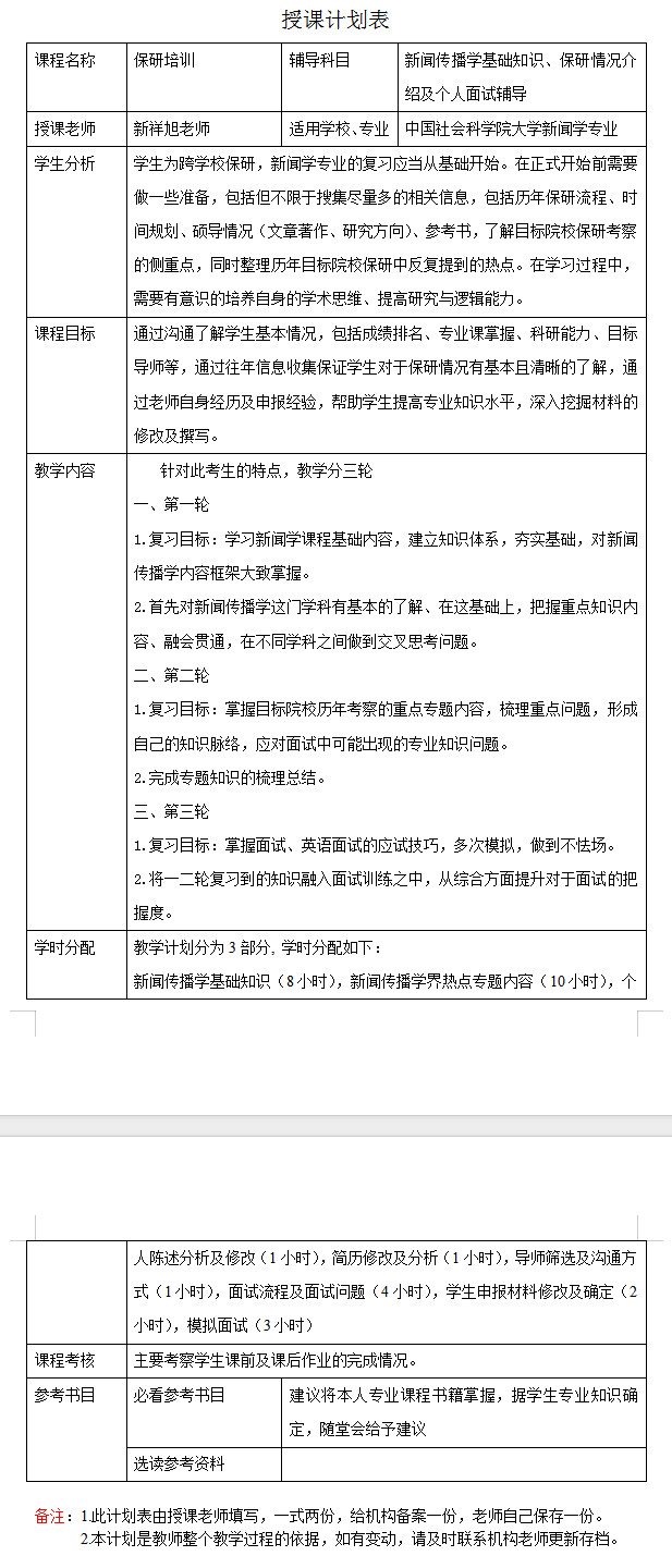 新祥旭考研:2024年中国社会科学院大学新闻学专业保研一对一辅导授课计划