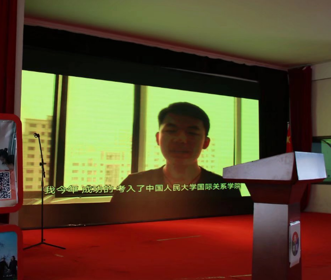 紧接着是历年上岸的学长学姐对同学们的祝福,圆梦人大的郑学长告诉大家:学习就像攀登爬山,只有经历艰辛的攀爬过程,才会看到最美的风景,大家的人生中都要有最美的风景,我们要在人生最美好的时光做最值得的事,去感受最美的风光,最美的人生。