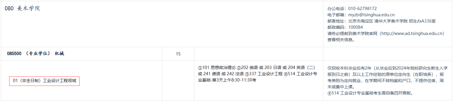 一、2024年清华大学美术学院机械考研招生目录