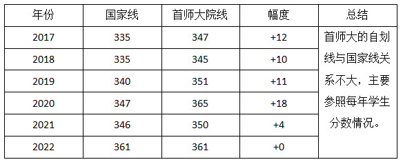 2022年,艺术学国家线从2021年的346上涨15分到361分,首师大音乐学院的院线与国家线持平。