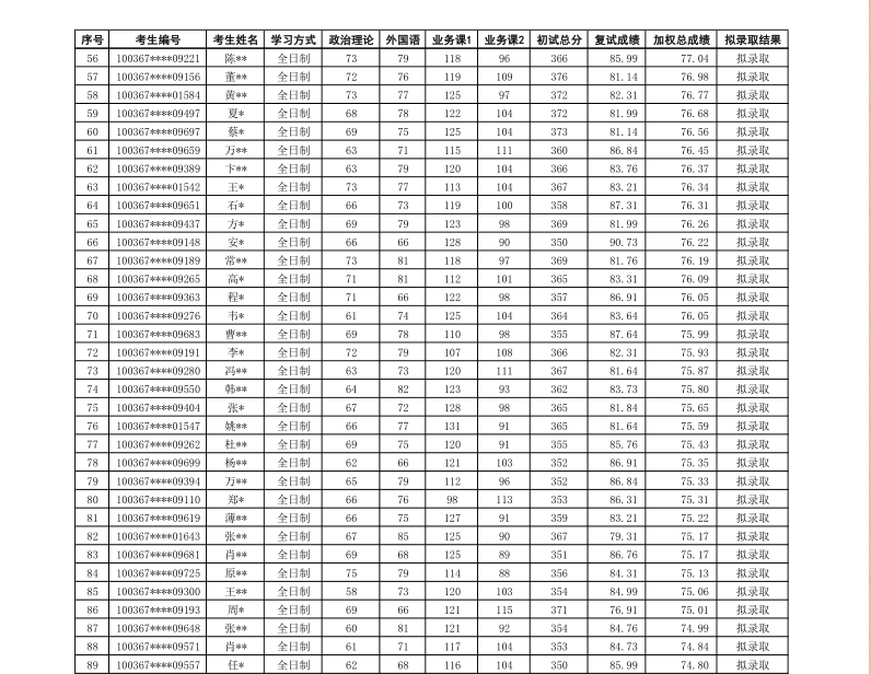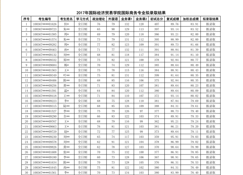 2017年对外经济贸易大学国际商务硕士研究生拟录取名单