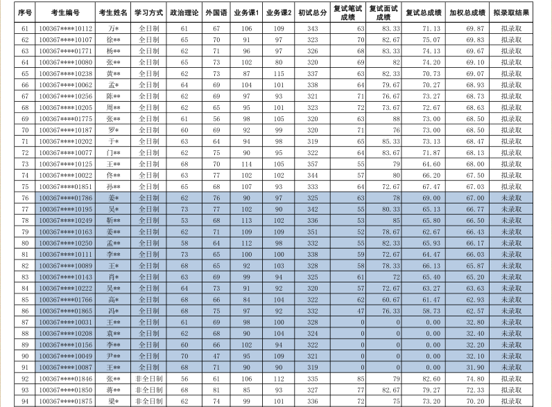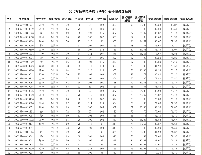2017年对外经济贸易大学法律硕士(法学)研究生拟录取名单