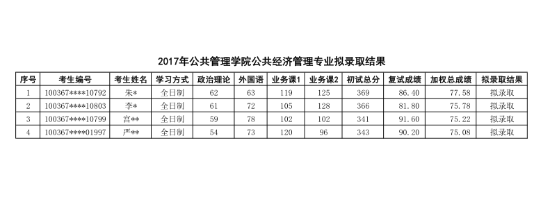 2017年对外经济贸易大学公共经济管理研究生拟录取名单
